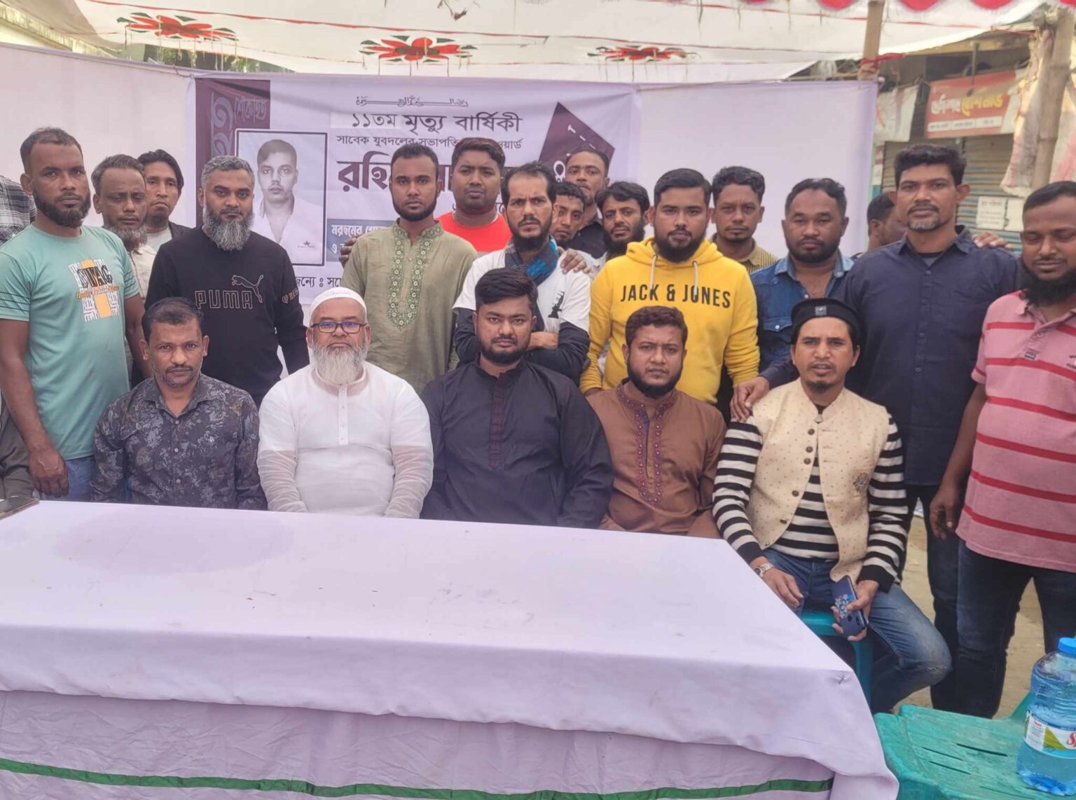 সিদ্ধিরগঞ্জ প্রতিনিধি : নাসিক ৬নং ওয়ার্ড যুবদলের সাবেক সভাপতি রহিম বাদশার ১১ তম মৃত্যুবার্ষিকী উপলক্ষে শনিবার ৬নং ওয়ার্ড সচেতন নাগরিক সমাজের উদ্যোগে বাদ যোহর গোদনাইল এসওরোড মেঘনা ডিপোর সামনে মরহুমের বিদেহী আত্মার মাগফেরাত কামনা করে শোকসভা মিলাদ ও দোয়া মাহফিল অনুষ্ঠিত হয়েছে।