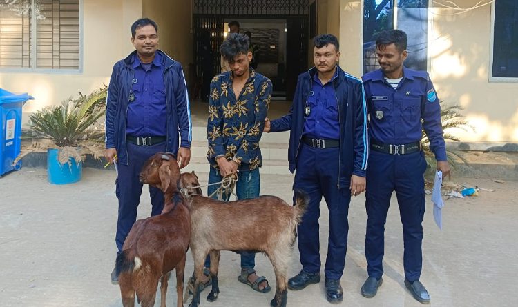 ছাগল চুরি করে নিয়ে যাওয়ার অভিযাগে কাজল (২৪) নামের এক যুবকে আটক করেছে পুলিশ। রবিবার (১৫ ডিসেম্বর) ভোর ৪ টায় সোনারগাঁয়ের মোগড়াপাড়া এলাকার চৌরাস্তায় ব্রীজের ঢালে থেকে তাকে আটক করা হয়। ঘটনার সত্যতা নিশ্চিত করেছে সোনারগাঁও থানার অফিসার ইনচার্জ (ওসি) এমএ বারী।