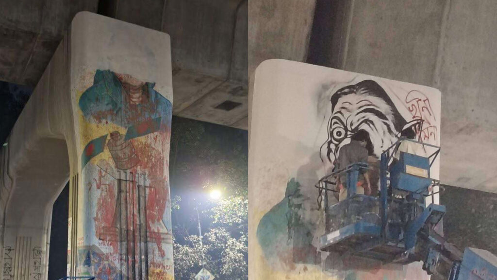 এতে বলা হয়, গতকাল শনিবার রাতে রাজু ভাস্কর্যের পিছনে মেট্রোরেলের দুটি পিলারে থাকা শেখ মুজিব এবং স্বৈরাচার শেখ হাসিনার ঘৃণাসূচক গ্রাফিতি মুছে ফেলার চেষ্টা করা হয়। এই দুটি গ্রাফিতি জুলাই আন্দোলনে বিপ্লব, প্রতিরোধ এবং ফ্যাসিবাদ ধ্বংসের প্রতিনিধিত্ব করে।