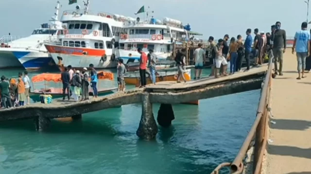 সেন্টমার্টিন দ্বীপের একমাত্র জেটিতে পর্যটন মৌসুমে প্রতিদিনই পর্যটকবাহী জাহাজ ভিড়ছে ৫টি আর স্থানীয় নৌযান ভিড়ে শতাধিক।