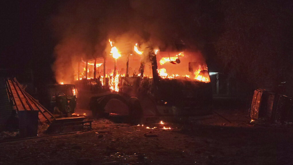 পরে সন্ধ্যার দিকে এ বিষয় নিয়ে বাস মালিক সমিতি ও বাসের শ্রমিকদের সঙ্গে সিএনজি চালকদের মধ্যে প্রথমে বাকবিতণ্ডা শুরু হয়। এক পর্যায়ে উভয় পক্ষ সংঘর্ষে জড়িয়ে পড়েন। সংঘর্ষ চলাকালীন বাসস্ট্যান্ডের অভ্যন্তরে দাঁড়িয়ে থাকা ২টি বাস ও ৫টি সিএনজিতে আগুন দেওয়া হয়েছে। ভাঙচুর করা হয়েছে ৭টি বাস ও ৫টি সিএনজিতে। সংঘর্ষ চলাকালে ইটপাটকেলের আঘাতে উভয় গ্রুপের অন্তত ৫০ জন আহত হয়েছেন। আহতদের মধ্যে ১২ জনকে ভোলা সদর হাসপাতালে চিকিৎসার জন্য ভর্তি করা হয়েছে। তিনজনকে উন্নত চিকিৎসার জন্য বরিশাল শের-ই বাংলা মেডিকেল নেওয়া হয়েছে।