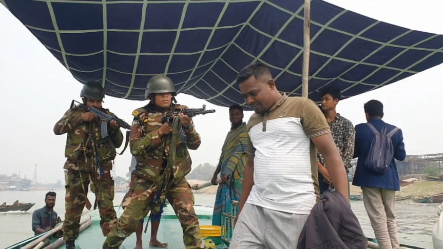 সুরমা নদীর ছাতক ও দোয়ারাবাজারে অবৈধ চাঁদাবাজি বন্ধে এভাবেই মহড়ার মাধ্যমে নিজেদের সক্ষমতা ও কঠোর বার্তা দিয়েছে সেনাবাহিনী। চোরাচালান, চাঁদাবাজি, ডাকাতি রোধ এমন অভিযান অব্যাহত রাখার কথা জানায় সেনাবাহিনী।