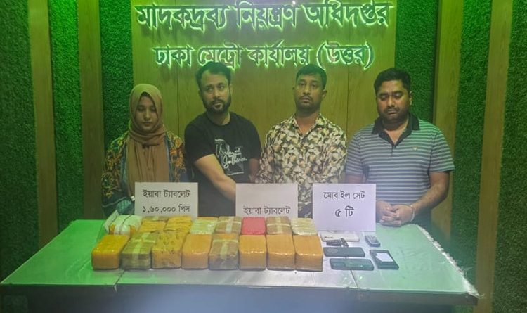 রাজধানীতে এ অভিযানে ১ লাখ ৬০ হাজার পিস ইয়াবা উদ্ধার করেছে মাদকদ্রব্য নিয়ন্ত্রণ অধিদপ্তর। এ অভিযানে নারায়ণগঞ্জের একজনসহ ৪জনকে আটক করেছে পুলিশ। শনিবার (২২মার্চ) দুপুরে মাদক নিয়ন্ত্রণ অধিদপ্তরে আয়োজিত এক সংবাদ সম্মেলনে এ তথ্য জানানো হয়। এ আগে শুক্রবার দিবাগত রাত সাড়ে ১২টার দিকে ঢাকার হাতিরঝিল এলাকা থেকে তাদের আটক করা হয়।