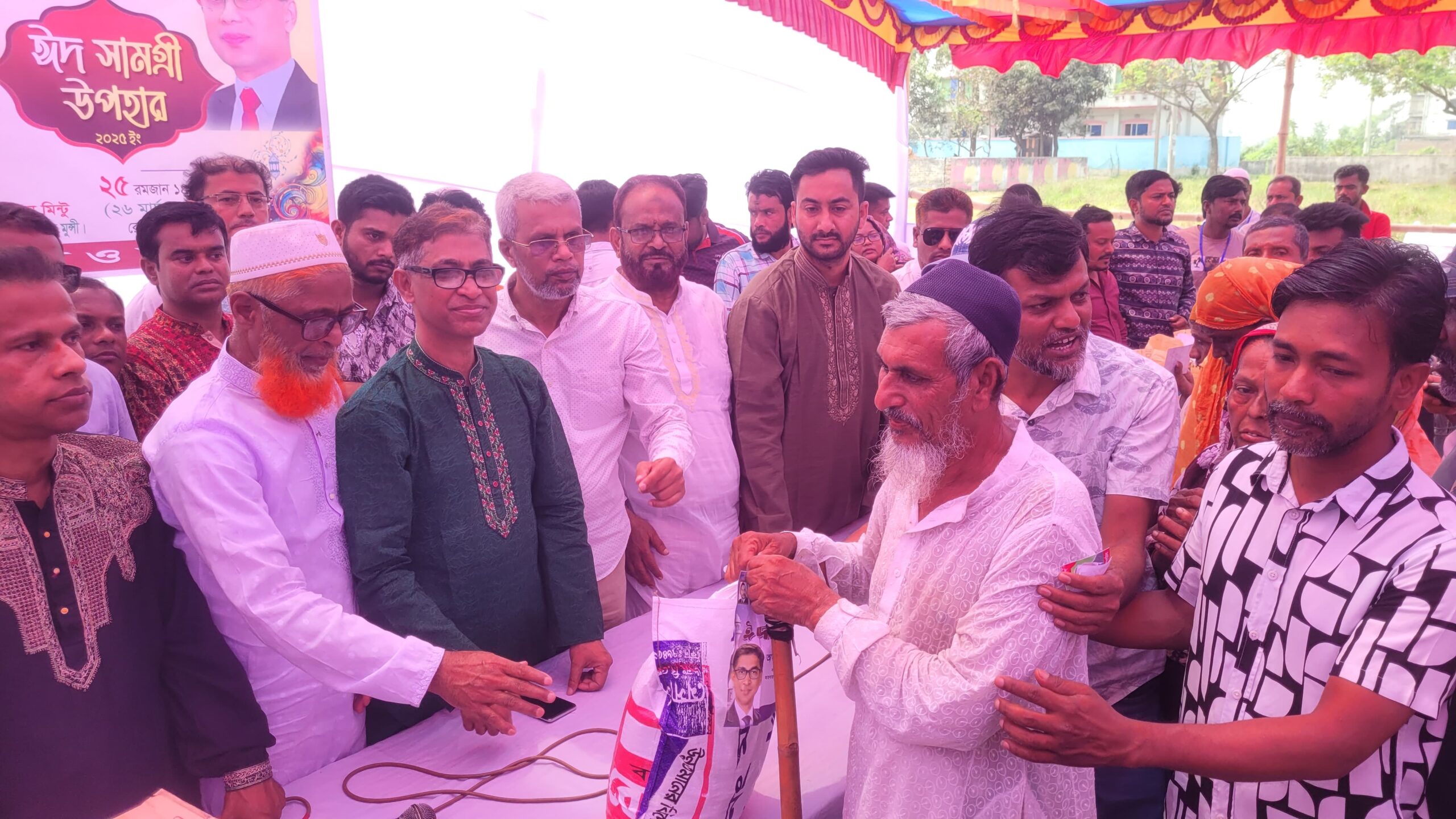 নারায়ণগঞ্জ জেলা বিএনপির আহবায়ক অধ্যাপক মামুন মাহমুদ বলেছেন, বিএনপির সব সময় জনগণের পাশে থাকার দল। রাষ্ট্র ক্ষমতায় না গিয়েও ১৫ বছর ধরে বিএনপি জনগণের পাশে রয়েছে। বর্তমানে দ্রব্যমূল্যের বাজার অস্থির অনেকে কর্মহীন তাই আমাদের দলের ভারপ্রাপ্ত চেয়ারম্যানের নির্দেশ ছিল আপনারা এ বছর ইফতার পার্টি না করে সাধারণ মানুষের পাশে দাঁড়ান। তাই আমরা তারেক রহমানের পক্ষ থেকে আপনাদের জন্য ঈদ উপহার নিয়ে এসেছি।