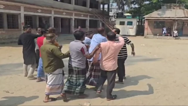 আহত সুপ্রিম কোর্টের আইনজীবী আবুল কালাম আজাদ বলেন, বিদ্যালয়ের এডহক কমিটির সভাপতি সেলিম শাহি ব্যক্তিগত সুবিধা নিয়ে গত মার্চে জ্যেষ্ঠতা লঙ্ঘন করে ভারপ্রাপ্ত প্রধান শিক্ষক নিয়োগ দেন। তাঁর এসব অনিয়মের প্রতিবাদে আজ সকালে এলাকাবাসী বিদ্যালয় মাঠে মানববন্ধন করে।
