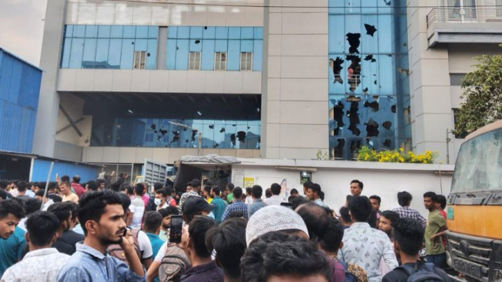 স্টাফ রিপোর্টার : ‘মার্চ ফর গাজা’ কর্মসূচিতে যোগ না দেওয়ায় নারায়ণগঞ্জের সিদ্ধিরগঞ্জে ইপিজেডে (রপ্তানি প্রক্রিয়াকরণ অঞ্চল) কয়েকটি পোশাক কারখানায় হামলা ও ভাঙচুরের ঘটনায় থানায় মামলা হয়েছে। রোববার ভোরে আদমজী ইপিজেডের কর্মকর্তা মুনসুর হাওলাদার বাদী হয়ে সিদ্ধিরগঞ্জ থানায় মামলাটি দায়ের করেন বলে জানান থানার ভারপ্রাপ্ত কর্মকর্তা (ওসি) শাহীনূর আলম। তিনি বলেন, মামলায় অজ্ঞাতনামা আরও ২০০-২৫০ জনকে আসামি করা হয়েছে। মামলায় ইপিজেডে অনধিকার প্রবেশ করে হামলা, ভাঙচুর ও নিরাপত্তা কর্মীদের মারধরের অভিযোগ আনা হয়েছে। এ ঘটনায় শনিবার আটক ৪৫ জনকে গ্রেপ্তার দেখিয়ে সকালে আদালতে পাঠানো হয়েছে। তাদের জিজ্ঞাসাবাদের জন্য রিমান্ডের আবেদন করা হবে বলেও জানান ওসি।এ মামলায় গ্রেপ্তার আসামিদের বয়স ১২ থেকে ৪০ বছরের মধ্যে। বেশ কয়েকজন শিশুও রয়েছেন গ্রেপ্তারের তালিকায়। তাদের ঘটনাস্থল থেকে যৌথ বাহিনী গ্রেপ্তার করে বলে জানান পুলিশ কর্মকর্তা শহীনূর আলম। এর আগে গত শনিবার বিকেলে কারখানা বন্ধ রেখে ‘মার্চ ফর গাজা’ মিছিলে যোগ না দেওয়ায় কয়েকশ লোক ইপিজেড এলাকায় ঢুকে পোশাক কারখানাগুলোতে হামলা ও ভাঙচুর চালায় বলে জানিয়েছে পুলিশ।মামলার এজাহারে বলা হয়েছে, হামলাকারীরা ইপিক গার্মেন্টস ম্যানুফ্যাকচারিং কোং লিমিটেড, ইউনিক বিডি লিমিটেড, সিম্মা ইউনিট-২ এবং অনন্ত হুয়াজিং লিমিটেডে ভাঙচুর চালান। অনন্ত হুয়াজিং লিমিটেড কারখানাটির প্রধান ফটক ভেঙে ভেতরে ঢুকে নিরাপত্তা রক্ষীকে মারধর করেন। কাজ বন্ধ না করলে কারখানা জ্বালিয়ে দেওয়ারও হুমকি দিয়ে কয়েকটি গাড়িও ভাঙচুর করেন তারা। খবর পেয়ে যৌথ বাহিনী পরিস্থিতি শান্ত করে।