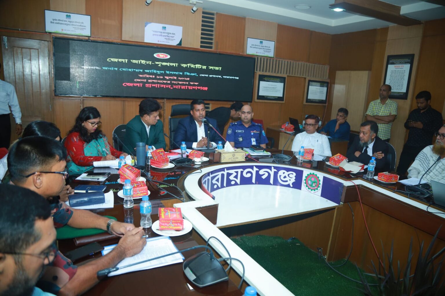 জেলা প্রশাসক মোহাম্মদ জাহিদুল ইসলাম মিঞা বলেন, দেশের আইনশৃংখলা রক্ষা করতে দলমত নির্বিশেষে আপনাদের সহযোগিতা করতে হবে। জনগণের নিরাপত্তা নিশ্চিত করতে, শান্তি ও শৃঙ্খলার জন্য আইন-শৃঙ্খলা রক্ষাকারী বাহিনীকে সহযোগিতা করা সকলের দায়িত্ব। জেলা প্রশাসক আরো বলেন, অপরাধমূলক কার্যকলাপ সম্পর্কে পুলিশকে তথ্য দিতে হবে। আইন-শৃঙ্খলা রক্ষাকারী বাহিনীর কাজে সহযোগিতা করতে হবে।শান্তিপূর্ণ সহাবস্থানের জন্য অন্যদের উৎসাহিত করতে হবে। আইন নিজের হাতে তুলে না নিয়ে, যে কোনো সমস্যায় আইনী সহায়তা নিতে হবে। নিজে সচেতন হোন এবং অন্যদেরও সচেতন করতে হবে। সকলের সম্মিলিত প্রচেষ্টায় নারায়ণগঞ্জ জেলা একটি নিরাপদ স্থান হিসেবে গড়ে উঠবে।