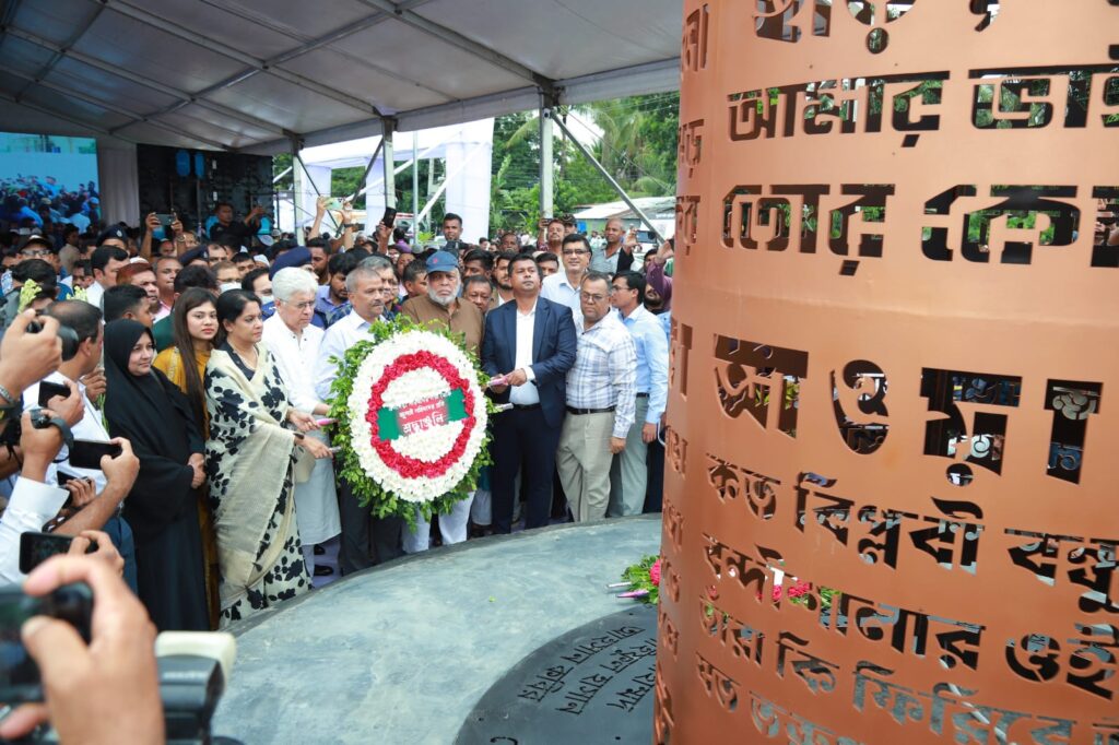 নারায়ণগঞ্জ প্রতিনিধি : নারায়ণগঞ্জে ২১ জন শহীদের নামে নির্মিত হলো প্রথম ‘জুলাই শহীদ স্মৃতিস্তম্ভ’। সোমবার (১৪ জুলাই) দুপুরে নারায়ণগঞ্জের হাজীগঞ্জ এলাকায় স্মৃতিস্তম্ভটি উদ্বোধন করেন অন্তর্বর্তী সরকারের চার উপদেষ্টা।