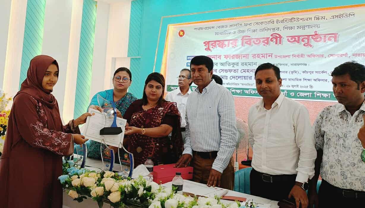 সোনারগাঁপ্রতিনিধি: নারায়ণগঞ্জের সোনারগাঁ উপজেলা নির্বাহী কর্মকর্তা ফারজানা রহমান বলেন,তোমাদের যারা মেধা বৃত্তি বা কৃতিত্বপূর্ণ সাফল্যের জন্য নগদ অর্থ,ক্রেষ্ট ও সার্টিফিকেট পেয়েছো তোমাদের কিন্তু এ সাফল্য ই শেষ নয়। সামনে আরো অনেক লম্বা পথ রয়েছে সে পথ কিন্তু সফলতার সাথে পাড়ি দিতে হবে। শুধু বিশ্ববিদ্যালয়ে ভর্তি হলেই চলবে না কৃতিত্বপূর্ণ সাফল্যেতার সহিত গন্তব্য লক্ষ্যে পৌঁছাতে হবে। মনে রাখবে স্বাধীনতা লাভ করা যেমন অনেক সহজ কিন্তু রক্ষা করাও অনেক কঠিন। তাই তোমাদেরও সফলতার ধারাবাহিকতা বজায় রেখে কঠোর পরিশ্রম করে ভবিষ্যতেও সফলতা অর্জন করতে হবে। গতকাল দুপুরে উপজেলা অডিটরিয়ামে সোনারগাঁ পারফরমেন্স বেজড গ্রান্টস ফর সেকেন্ডারি ইনস্টিটিউশনস স্কিম ( SEDP) এর আওতায় পুরস্কার বিতরণী অনুষ্ঠানে প্রধান অতিথির বক্তব্যে তিনি এসব মন্তব্য করেন। অনুষ্ঠানে একাডেমিক সুপার ভাইজার কাজল চন্দ্র পালের সঞ্চালনায় ও মাধ্যমিক শিক্ষা অফিসার দেলোয়ার হোসেনের সভাপতিত্বে উপস্থিত ছিলেন সহকারি কমিশনার ( ভুমি) কাঁচপুর সার্কেল সেগুফতা মেহনাজ,ও সহকারি কমিশনার ( ভুমি) মন্জুরুল মোর্শেদ,ড.মো.ইকবাল হোসাইন ভূইয়াসহ উপজেলার বিভিন্ন শিক্ষাপ্রতিষ্ঠানের প্রধান, ম্যানেজিং কমিটির সদস্য,কৃতি শিক্ষার্থী ও অভিভাবকবৃন্দ। সোনারগাঁ উপজেলার ২০২২-২০২৩ শিক্ষা বর্ষের ১৩ টি শিক্ষা প্রতিষ্ঠান থেকে ২৪ জন মেধাবী শিক্ষার্থীকে পুরষ্কৃত করা হয়। এসময় শিক্ষা মন্ত্রনালয়ের মাধ্যমিক ও উচ্চ শিক্ষা অধিদপ্তরের মাধ্যমে এসএসসি ও সমমান শিক্ষার্থীকে দশ হাজার ও এইচএসসি ও সমমান শিক্ষার্থীকে পঁচিশ হাজার টাকা করে তাদের ব্যাংক একাউন্টে মাধ্যমে এ অর্থ প্রদান করা হয়েছে। এছাড়াও প্রত্যেক শিক্ষার্থীকে ক্রেষ্ট ও সার্টিফিকেট প্রদান করা হয়।