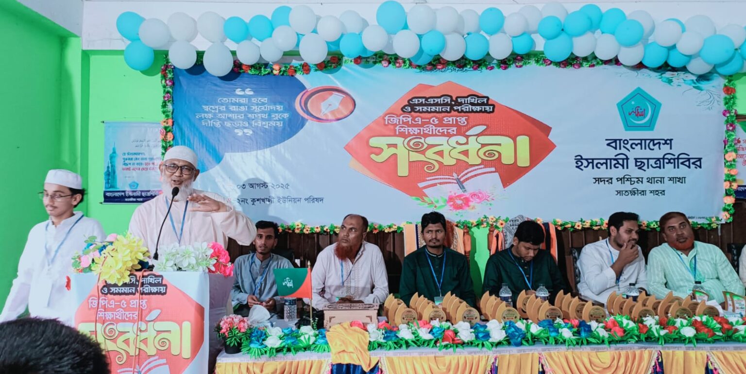 সাতক্ষীরা প্রতিনিধি : বাংলাদেশ ইসলামী ছাত্রশিবিরের সাতক্ষীরা সদর পশ্চিম থানা শাখার উদ্যোগে কেন্দ্র ঘোষিত কর্মসূচির অংশ হিসেবে এসএসসি-তে জিপিএ-৫ প্রাপ্ত শিক্ষার্থীদের ও প্রতিটি স্কুলের সিঙ্গেল ডিজিটধারী শিক্ষার্থীদের সংবর্ধনার প্রদান করা হয়েছে।