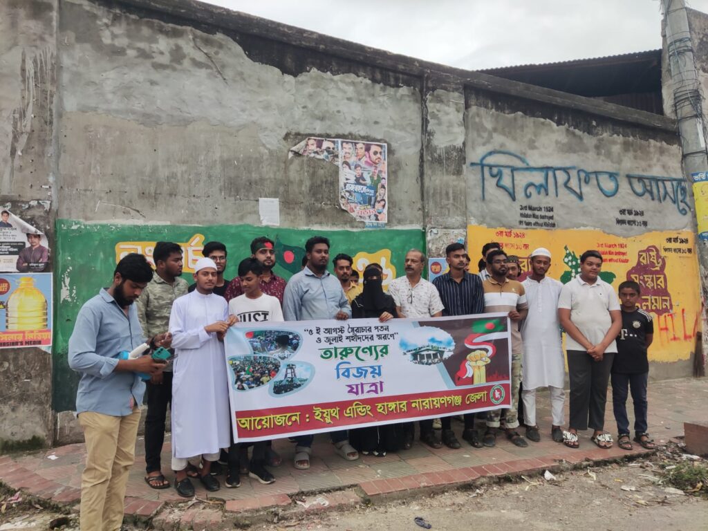 ইয়ুথ এন্ডিং হাঙ্গার নারায়ণগঞ্জ জেলার সমন্বয়কারী রাকিবুল ইসলাম ইফতি’র সভাপতিত্বে উক্ত আয়োজনে উপস্থিত ছিলেন সুশাসনের জন্য নাগরিক – সুজন, নারায়ণগঞ্জ জেলার সভাপতি ধীমান সাহা জুয়েল, দলিত নারী উন্নয়ন সংস্থা’র সভাপতি সনু রানী দাস, ইয়ুথ এন্ডিং হাঙ্গার নারায়ণগঞ্জ জেলার উপদেষ্টা মোহাম্মদ জারিফ অনন্ত, বুবলী যুব কল্যান সংস্থার সভাপতি বুবলী আক্তার, সাধারণ সম্পাদক সাদিয়া আফরিন তমা এবং ইয়ুথ এন্ডিং হাঙ্গার নারায়ণগঞ্জ জেলার বিভিন্ন ইউনিটের ইউনিট কো-অর্ডিনেটর এবং সদস্যগণ। পদযাত্রা শেষে একটি সংক্ষিপ্ত পথসভা অনুষ্ঠিত হয়। উক্ত পথসভায় বক্তারা বলেন জুলাই গণঅভ্যুত্থান মালিকানা এদেশের ছাত্র ও জনতা সবার। অভ্যুত্থানকালীন অনেক মানুষ স্বেচ্ছাসেবী হিসেবে কাজ করে গেছে, কিন্তু কোন প্রকার ক্রেডিটবাজি করার চেষ্টা করেনি। কিন্তু এই আমরা দেখতে পাচ্ছি এক শ্রেণির মানুষ আজ জুলাই অভ্যুত্থানের একক কৃতিত্ব দাবি করে বসে আছে। কিন্তু এই অভ্যুত্থানের কোন একক স্টেকহোল্ডার নেই, এই অভ্যুত্থানের স্টেকহোল্ডার আপামর জনসাধারণ। জনগণের অবদানকে অস্বীকার করার এই অপচেষ্টার জন্যই আমরা অভ্যুত্থান পরবর্তী কাঙ্ক্ষিত সাফল্য পাইনি, নতুন বাংলাদেশ গঠন করতে পারিনি। আমাদের প্রত্যাশা থাকবে এদেশের রাজনীতিবিদেদের সুবুদ্ধির উদয় হবে, তারা অভ্যুত্থানে জনগণের মালিকানাকে যোগ্য মূল্যায়ন করবে এবং জনগণও তাদের অভ্যুত্থানের ন্যায্য হিস্যা বুঝে নিবে এবং নতুন বাংলাদেশ বিনির্মানে অবদান রাখবে।