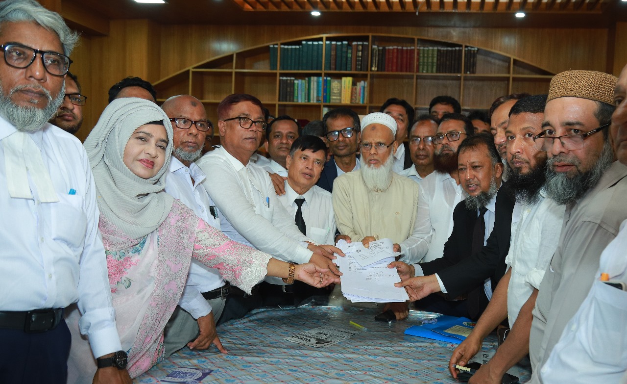 ১৩ আগষ্ট বুধবার দুপুর আড়াইটায় নারায়ণগঞ্জ আইনজীবী সমিতির নির্বাচন কমিশনারের নিকট জমা দেন।