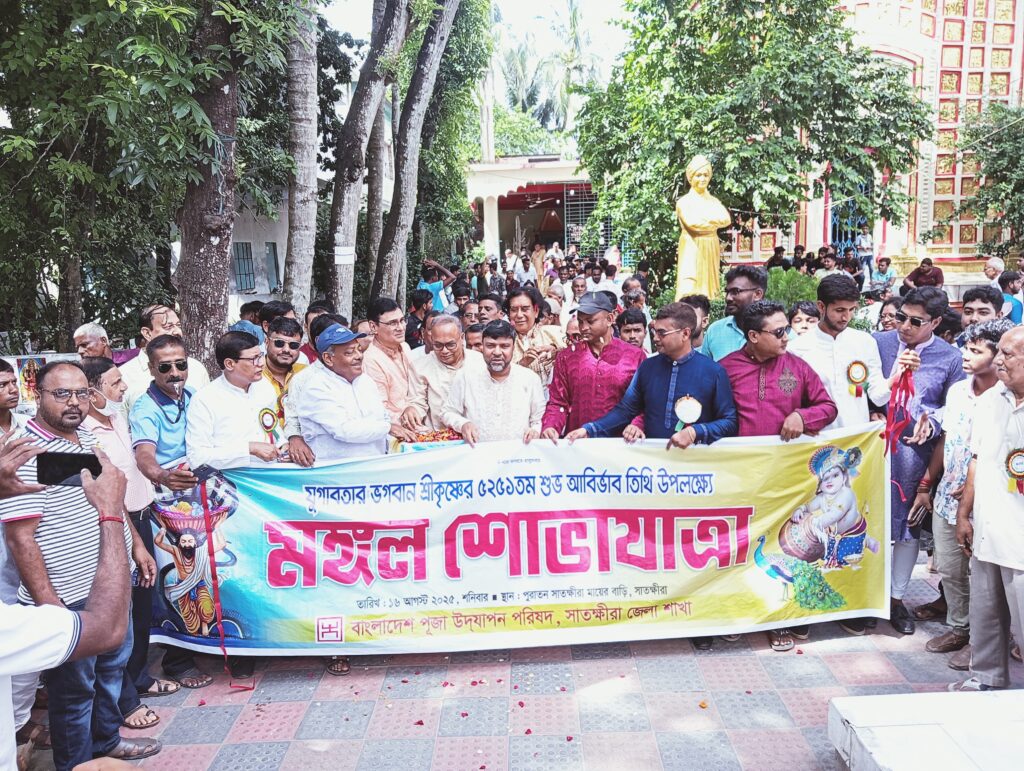 মোঃ হাফিজুল ইসলাম,সাতক্ষীরা: সাতক্ষীরায় সনাতন হিন্দু ধর্মাবলম্বীদের শ্রীকৃষ্ণের জন্মাষ্টমী উপলক্ষে শোভাযাত্রা ও আলোচনা সভা অনুষ্ঠিত হয়েছে।