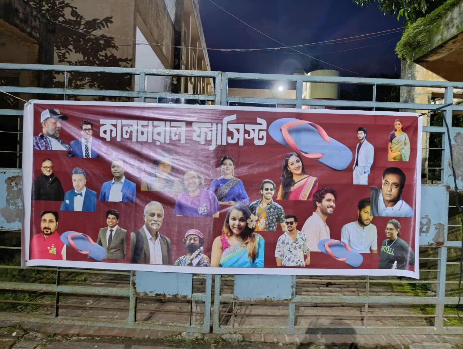 কর্মসূচিতে অংশগ্রহণকারীরা গায়ক লিঙ্কন (আর্টসেল), রাহুল আনন্দ, সিয়াম (এসপি ক্রিয়েশন), জাহের আলভি, অরুণা বিশ্বাস, সুমন আনোয়ার, নাজিফা তুষি, সাজু খাদেম, মুমতাহিনা টয়া, সুনেরাহ, ফারাবি হাফিজ, পিয়া জান্নাতুল, আরস খান, খাইরুল বাসার, ইরফান সাজ্জাদ, সাকিব খান, স্বাধীন, পারসা মেহেজাবিন, কচি খন্দকার, মেহের আফরোজ শাওনসহ বিভিন্ন তারকার ছবিতে জুতা নিক্ষেপ করেন। এ সময় জুতা নিক্ষেপকারীরা তারকাদের বিরুদ্ধে বিভিন্ন স্লোগান দেন।