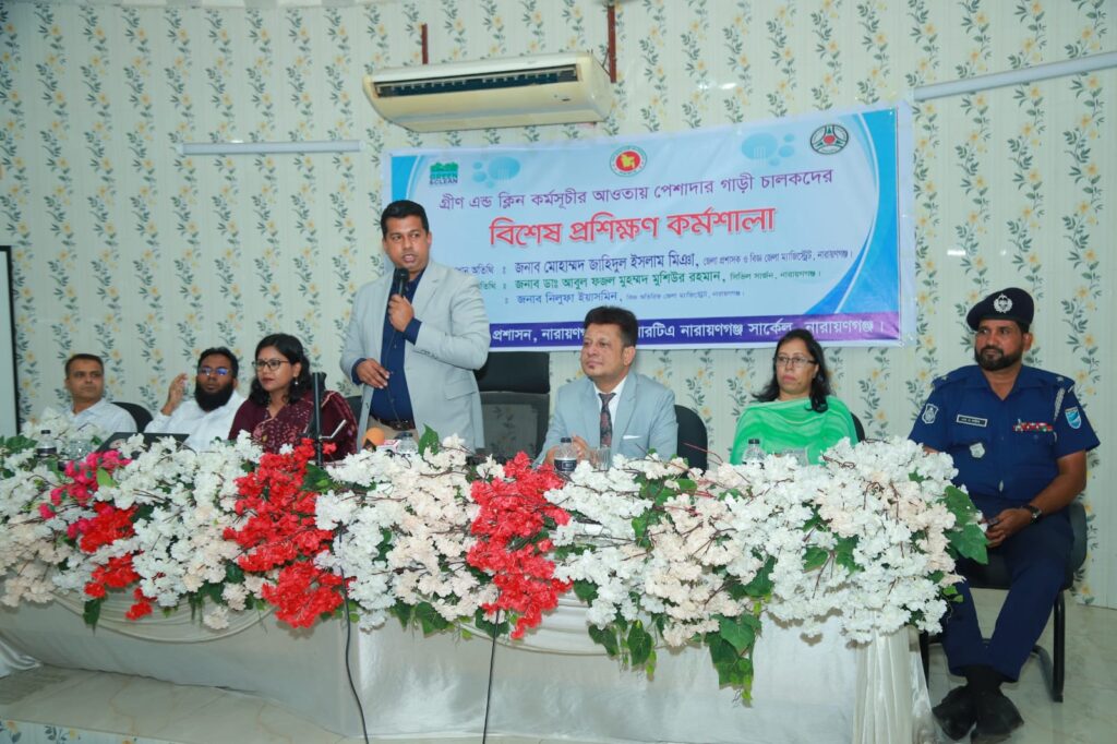 বুধবার (বুধবার) বেলা ১২টায় নারায়ণগঞ্জে গ্ৰিন এন্ড ক্লীন কর্মসূচির আওতায় পেশাদার গাড়ী চালকদের বিশেষ প্রশিক্ষণ কর্মশালায় প্রধান অতিথির বক্তব্যে তিনি এ কথা বলেন।