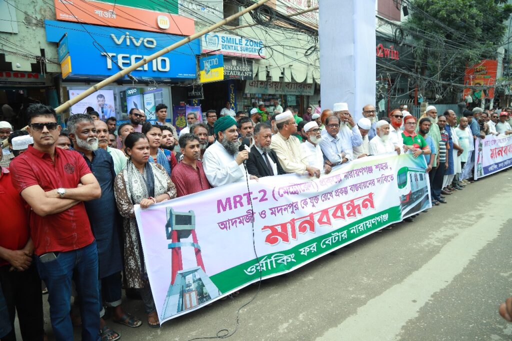 মানববন্ধনে দল-মত নির্বিশেষে সকল রাজনৈতিক দলের ও পেশাজীবী সংগঠনের নেতৃবৃন্দ অংশগ্রহণ করেন। সেই সাথে মানববন্ধন থেকে এমআরটি টু প্রকল্পে নারায়ণগঞ্জ শহর, আদমজী, মদনপুরকে যুক্ত রেখে প্রকল্প বাস্তবায়নের দাবি জানানো হয়।