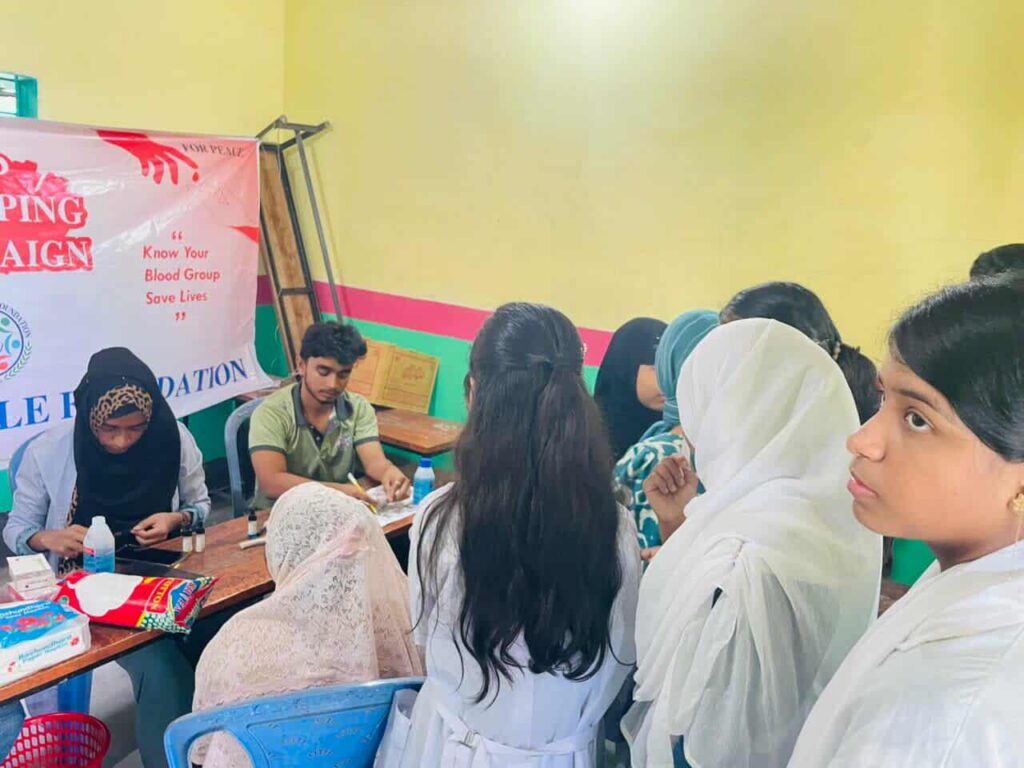 প্লে থেকে অষ্টম শ্রেণি পর্যন্ত চলমাম এই স্কুলের যেসমস্ত ছাত্রছাত্রীরা চেয়েছেন সবাইকেই রক্তের গ্রুপ নির্ণয় করা হয়। এসময় রক্তের গ্রুপ নির্ণয় ও রক্তদানসহ বিভিন্ন বিষয়ে শিক্ষার্থীদের মাঝে বার্তা দেয় পিস ফর পিপল ফাউন্ডেশনের সদস্যরা। স্কুলে ক্যাম্পেইন পরিচালনা করতে সহযোগিতা করেন শিক্ষাপ্রতিষ্ঠানটির পরিচালক মো. সাইফুল ইসলাম মাসুম।