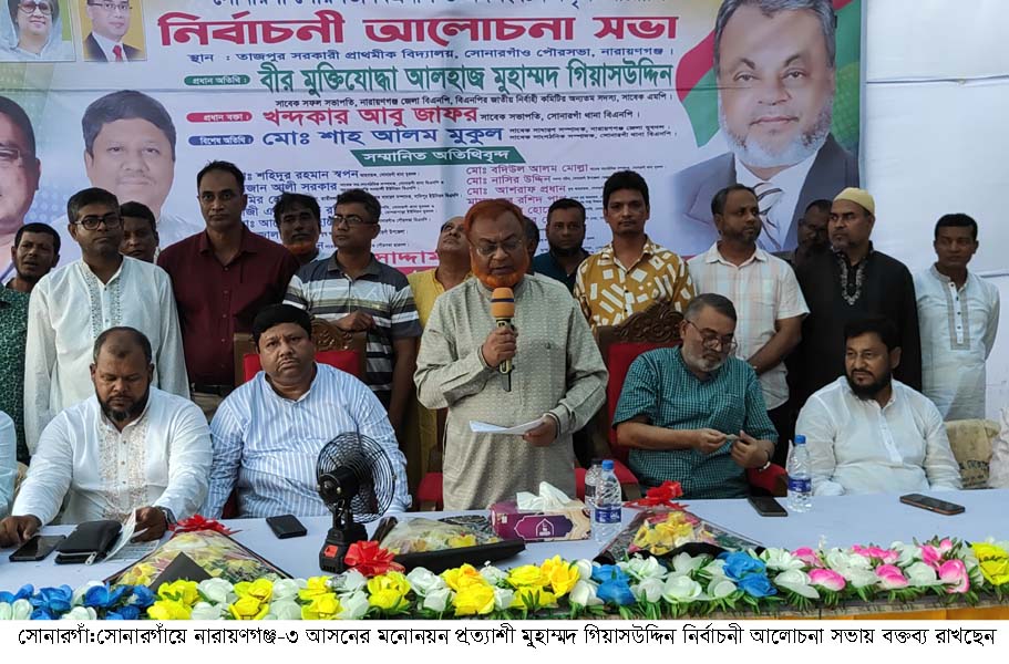 সোনারগাঁ(নারায়ণগঞ্জ)প্রতিনিধি: বিএনপির জাতীয় নির্বাহী কমিটির সদস্য ও বিএনপির সাবেক সাংসদ বীর মুক্তিযোদ্ধা মুহাম্মদ গিয়াসউদ্দিন বলেছেন, বিএনপিকে ভালো মানুষ দিয়ে সু-সংগঠিত করতে হবে। এ দলকে ভালো মানুষ দিয়ে নেতৃত্ব না দিতে পারলে বিএনপির বদনাম হবে। যারা ঘুষ,দূর্নীতি,সন্ত্রাস ও চাঁদাবাজদের প্রতিহত করা হবে। যারা এসব অপকর্মে জড়িত আছেন সাবধান হয়ে যান। আগামীতে বিএনপির নেতাকর্মীদের সঙ্গে নিয়ে আপনাদের প্রতিহত করা হবে। গতকাল শুক্রবার বিকেলে পৌর এলাকার তাজপুর সরকারি প্রাথমিক বিদ্যালয় মাঠে সোনারগাঁ পৌরসভা বিএনপি ও অঙ্গ সংগঠনের উদ্যোগে আয়োজিত নির্বাচনী আলোচনা সভায় এসব কথা বলেন। গিয়াসউদ্দিন আরো বলেন, আগামী জাতীয় সংসদ নির্বাচনে বিএনপির মনোনীত প্রার্থীদের বিজয়ী করার জন্য কাজ করে যাচ্ছেন। বিএনপি এ আসনগুলোতে যাকে মনোনীত করবেন তাদের পক্ষেই কাজ করতে হয়ে। এখানে কোন ব্যক্তিকে প্রাধান্য না দিয়ে দলীয় প্রতীকে গুরুত্ব দিতে হবে। তিনিও একটি আসন থেকে মনোনয়ন চাইবেন। সোনারগাঁবাসীর দাবি প্রেক্ষিতি তিনি নারায়ণগঞ্জ-৩ আসন থেকে মনোনয়ন চাইবেন। তাকে এ আসন থেকে মনোনয়ন দেওয়া হলে নির্বাচিত হয়ে শিক্ষা,স্বাস্থ্য, কৃষি, যোগাযোগ ব্যবস্থার উন্নয়নের কাজ করে যাবেন। সোনারগাঁকে তার পুরানো ঐতিহ্যের ফিরিয়ে আনা হবে। আমাদের সন্তানদের সু নাগরিক গড়ে তোলার জন্য শিক্ষা প্রতিষ্ঠানের শিক্ষার মানোন্নয়ন করা হবে।