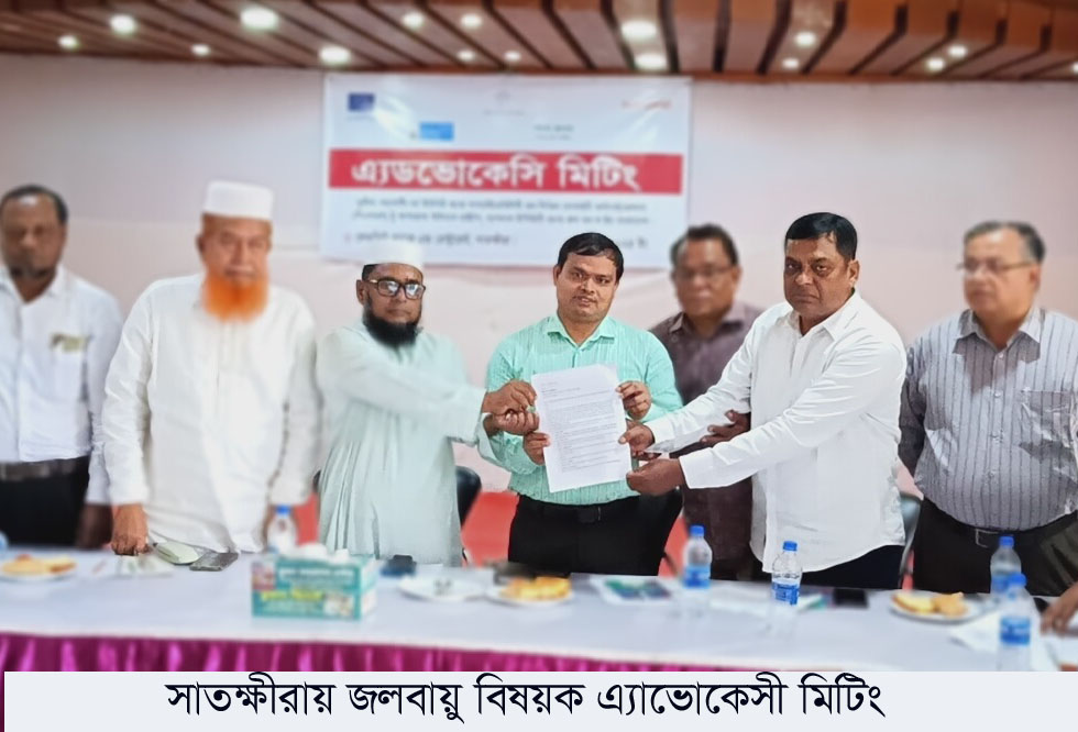 জলবায়ু পরিবর্তনের ক্ষতিকর প্রভাব ও ক্ষতি হ্রাসে করণীয় বিষয়ক এ্যাডভোকেসী সভা অনুষ্ঠিত হয়েছে। বুধবার (৮ অক্টোবর) সকালে সাতক্ষীরা লেকভিউ ক্যাফে এন্ড রেষ্টুরেন্টে অনুষ্ঠিত সভায় প্রধান অতিথি ছিলেন, সদর উপজেলার নির্বাহী অফিসার (ভারপ্রাপ্ত) মো: বদরুদ্দোজা। এসময় প্রধান অতিথির কাছে স্মারকলিপি প্রদান করা হয়।