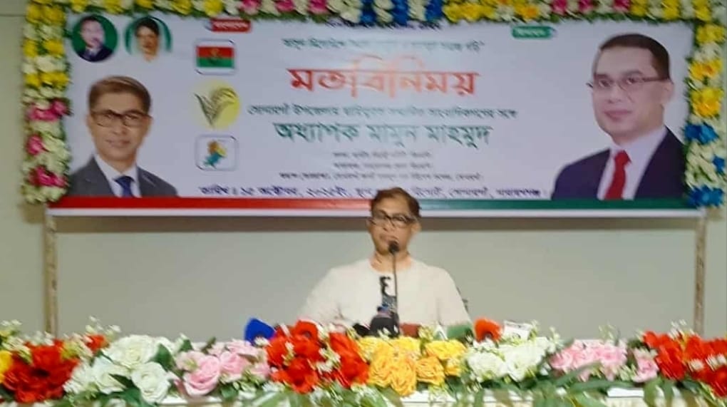 সোনারগাঁ(নারায়ণগঞ্জ)প্রতিনিধি: নারায়ণগঞ্জের সোনারগাঁয়ে সাংবাদিকদের সাথে মতবিনিময় করেন নারায়ণগঞ্জ জেলা বিএনপির আহবায়ক অধ্যাপক মামুন মাহমুদ। ১৫ অক্টোবর বুধবার বিকেলে উপজেলার পৌর এলাকার রয়েল রিসোর্টে,বিএনপির জাতীয় নির্বাহী কমিটির সদস্য ও নারায়ণগঞ্জ জেলা বিএনপির আহবায়ক অধ্যাপক মামুন মাহমুদ সোনারগাঁয়ের সকল সাংবাদিকদের মতবিনিময় সভার আয়োজন করেন। এসময় মতবিনিময় সভায় উপস্থিত ছিলেন,সোনারগাঁও প্রেসক্লাবের সাবেক সভাপতি অসিদ কুমার দাস,সোনারগাঁ প্রেসক্লাবের সাবেক সাধারণ সম্পাদক আল আমিন তুষার,প্রেসক্লাবের সাধারণ সম্পাদক মো.আবু বক্কর ছিদ্দিক,নয়া দিগন্তের সোনারগাঁ প্রতিনিধি হাসান মাহমুদ রিপন,ইনকিলাবের নারায়ণগঞ্জ জেলা প্রতিনিধি মোক্তার মোল্লা,সংবাদের প্রতিনিধি মো. সুমন শাহ সমকালের সোনারগাঁ প্রতিনিধি শাহাদাত হোসেন রতন,উপজেলা প্রেসক্লাবের সভাপতি মো.পনির ভুইয়া,মডেল প্রেসক্লাবের সভাপতি মো.অনিক, আনন্দ টিভির প্রতিনিধি মাজহারুল ইসলাম,দেশ রুপান্তরের প্রতিনিধি রবিউল হাসান,কালবেলার প্রতিনিধি মো.রুবেল খান,সোনারগাঁ প্রেসক্লাবে সদস্যরাসহ সোনারগাঁয়ের সকল সাংবাদিক বৃন্দ উপস্থিত ছিলেন। মতবিনিময় সভায় অধ্যাপক মামুন মাহমুদ জানান,নারায়ণগঞ্জ-৩ (সোনারগাঁ-সিদ্দিরগঞ্জ) আসনের প্রার্থী ঘোষণা করেন। তবে তিনি বলেন দল যাকে মনোনয়ন দেয় তার হয়েই কাজ করবো। অবশেষে তিনি স্লোগান দেন ‘আসুন মিলেমিশে শান্তি সমৃদ্ধি ও সাম্যের সমাজ গড়ি”