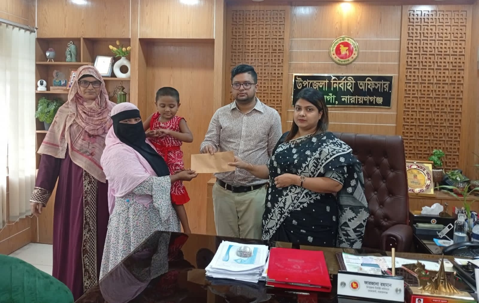 সোনারগাঁ(প্রতিনিধি); নারায়ণগঞ্জের সোনারগাঁয়ে উপজেলা সমাজসেবা অফিস কতৃক অসুস্থ,গরীব ও অসহায়ের মাঝে নগদ আর্থিক সহযোগিতা প্রদান করা হয়েছে। ২৩ অক্টোবর বৃহস্পতিবার সকালে উপজেলার বিভিন্ন ইউনিয়নের অসহায় দরিদ্র পরিবারের মাঝে নগদ উপজেলা নির্বাহী কর্মকর্তা ফারজানা রহমান ও উপজেলা সমাজসেবা কর্মকর্তা মো,ইকবাল হোসেন উপস্থিতিতে অসহায় দরিদ্র পরিবারের মাঝে নগদ আর্থিক সহযোগিতা প্রদান করেন। এসময় উপজেলার বিভিন্ন অধিদপ্তরের কর্মকর্তাগন উপস্থিত ছিলেন। উপজেলা নির্বাহী কর্মকর্তা ফারজানা রহমান জানান গত বছর ২০২৪ সালের সেপ্টেম্বর মাসে সোনারগাঁ উপজেলা নির্বাহী কর্মকর্তা হিসেবে যোগদান পর থেকে তিনি জনপ্রতিনিধি সহ সারা সোনারগাঁয়ের মানুষের পাশে থেকে সফলতার সহিত নিরলস ভাবে দায়িত্ব পালন করে আসছেন। তিনি গত ১টি বছর সোনারগাঁয়ের সকল শ্রেণী পেশার মানুষের ভালোবাসা পেয়েছি,আগামী দিনগুলোতে যতদিন সোনারগাঁয়ে থাকেন প্রতিটি উন্নয়ন কাজে জনগণের পাশে থাকার কথা ব্যক্ত করেন।