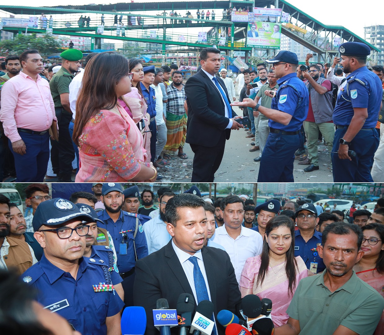 নারায়ণগঞ্জের গুরুত্বপূর্ণ সড়ক সংযোগস্থল সাইনবোর্ড মোড়ে জননিরাপত্তা ও ট্রাফিক ব্যবস্থাপনা জোরদারে নির্মিত পুলিশ বক্স নির্মাণের জন্য স্থান পরিদর্শন করেছেন জেলা প্রশাসক ও পুলিশ সুপার।
