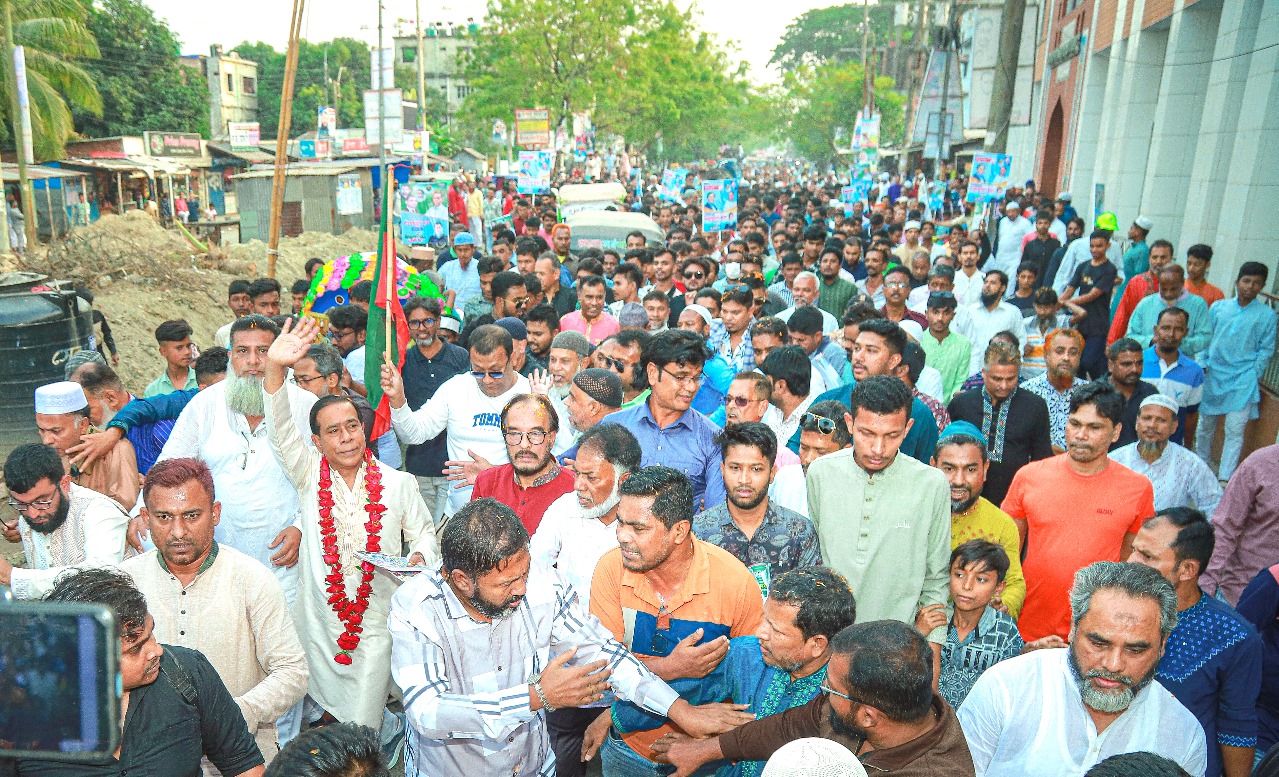 ত্রয়োদশ জাতীয় সংসদ নির্বাচনকে সামনে রেখে নারায়ণগঞ্জ-৫ (সদর-বন্দর) আসনে বিএনপি মনোনীত ধানের শীষের প্রার্থী মাসুদুজ্জামান মাসুদের গণসংযোগে বাঁধভাঙা জনস্রোত।