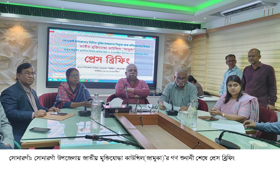 সোনারগাঁ(প্রতিনিধি): নারায়ণগঞ্জের সোনারগাঁ উপজেলায় জাতীয় মুক্তিযোদ্ধা কাউন্সিল(জামুকা)’র গণ শুনানী অনুষ্ঠিত হয়েছে। গতকাল রোববার সকাল থেকে দুপুর পর্যন্ত সোনারগাঁ উপজেলা পরিষদে ৫২জন মুক্তিযোদ্ধার শুনানী করা হয়। ১০৯ জন মুক্তিযোদ্ধাকে অমুক্তিযোদ্ধা দাবি করে মুক্তিযোদ্ধা আলতাফ হোসেন জামুকায় একটি অভিযোগ দায়ের করেন। সেই অভিযোগের প্রেক্ষিতে জাতীয় মুক্তিযোদ্ধা কাউন্সিলের পক্ষ থেকে এ গণ শুনানী করা হয়। এসময় উপস্থিত ছিলেন,জামুকার মহাপরিচালক শাহিনা খাতুন,সদস্য মেজর (অব.) সৈয়দ মুহিবুর রহমান,হাবিবুল্লাহ আলম,মেজর (অব.) ফজলুর রহমান,সাদেক আহমেদ খাঁন,মেজর (অব.) আব্দুস সালাম,সোনারগাঁ উপজেলা নির্বাহী অফিসার ফারজানা রহমান। গণ শুনানী শেষে বিকেল সাড়ে তিনটায় উপজেলা পরিষদের সভাকক্ষে সাংবাদিকদের সাথে প্রেস ব্রিফিং করেন জামুকার নেতৃবৃন্দ। প্রেস ব্রিফিংয়ে জাতীয় মুক্তিযোদ্ধা কাউন্সিলের সদস্য মেজর (অব.) সৈয়দ মুহিবুর রহমান জানান, মুক্তিযোদ্ধা আলতাফ হোসেনের অভিযোগের প্রেক্ষিতে অভিযোগকারী ও অভিযুক্ত ১০৯ জনকে শুনানীতে অংশ নিতে নোটিশ দেওয়া হয়। গণ শুনানীতে ৫২ জন মুক্তিযোদ্ধা উপস্থিত হন। বাকিরা উপস্থিত না হওয়ায় তাদের পুনরায় নোটিশ দিয়ে তাদের শুনানীর জন্য ডাকা হবে। সাংবাদিকদের প্রশ্নের জবাবে তিনি জানান, অভিযোগের বিষয়ে তারা প্রাথমিক যাচাই বাছাই করে জামুকার পূনাঙ্গ সভায় উপস্থাপন করবেন। সেখানে বিষয়গুলোর চুড়ান্ত সিদ্ধান্ত নেওয়া হবে। তিনি আরো জানান, অভিযোগকারীর বিষয়েও খোঁজ খবর নেওয়া হয়েছে। অভিযোগের সত্যতা না পাওয়া গেলে তার বিরুদ্ধেও ব্যবস্থা নেওয়া হবে। এছাড়াও বিনা কারনে মান ক্ষুন্ন করা হলে অভিযুক্ত ব্যক্তিও আইনের আশ্রয়ের মাধ্যমে তার বিচার দাবি করতে পারবেন।