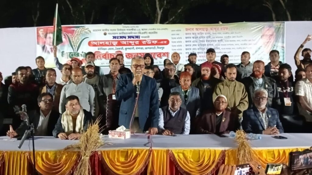 বৃহস্পতিবার (২৭ নভেম্বর) বিকালে সাতানী ভাদড়া স্কুল এন্ড কলেজ মাঠে কুশখালী ইউনিয়নের সাবেক চেয়ারম্যান ও সাবেক সভাপতি বিএম আব্দুর রাইহানের সভাপতিত্বে নির্বাচনী জনসমাবেশে প্রধান অতিথি হিসেবে বক্তব্য রাখেন সাতক্ষীরা-২ আসনের সংসদ সদস্য প্রার্থী গণমানুষের নেতা আলহাজ্ব মো. আব্দুর রউফ।