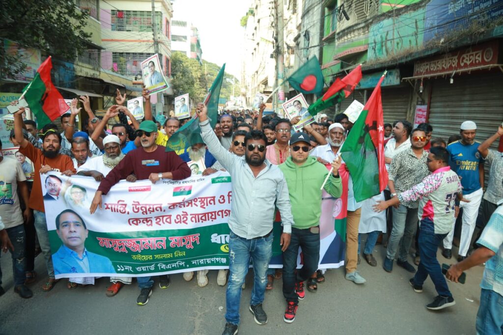 নারায়ণগঞ্জ-৫ আসনের বিএনপির মনোনীত প্রার্থী মাসুদুজ্জামান মাসুদের সমর্থনে ১১ নং ওয়ার্ড বিএনপি বিপুল সংখ্যক নেতাকর্মী নিয়ে মূল নির্বাচনী সমাবেশে যোগ দিয়েছে। এসময় সমাবেশে মাসুদুজ্জামান মাসুদ নারায়ণগঞ্জকে শান্তি, উন্নয়ন, কর্মসংস্থান ও শিক্ষার কেন্দ্র হিসেবে গড়ে তোলার অঙ্গীকার করেন।