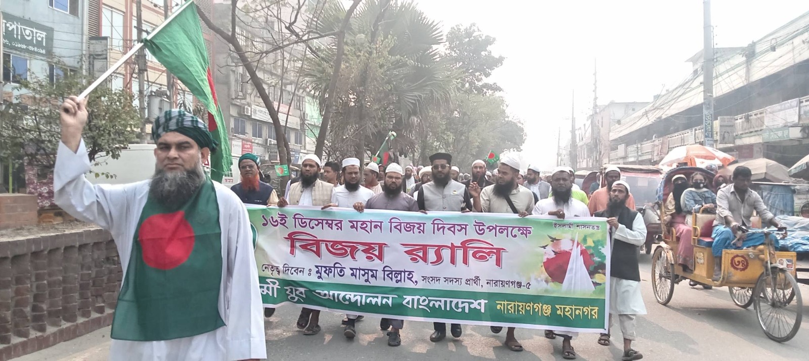 আজ ১৬ ডিসেম্বর মঙ্গলবার সকাল ১১ টায় চিটাগাংরোড থেকে চৌধুরীবাড়ী পর্যন্ত বিজয় র্যালিতে প্রধান অতিথি হিসেবে উপস্থিত ছিলেন ইসলামী আন্দোলন বাংলাদেশ মনোনীত নারায়ণগঞ্জ-৩ আসনের সংসদ সদস্য প্রার্থী মোঃ গোলাম মসিহ্। উপস্থিত ছিলেন জেলা সভাপতি মাওলানা দ্বীন ইসলাম, নগর সেক্রেটারি মুহা. সুলতান মাহমুদ, জয়েন্ট সেক্রেটারি ডা. সাইফুল ইসলাম, সিদ্ধিরগঞ্জ থানা উত্তরের সভাপতি বিল্লাল হোসেন তালুকদার, দক্ষিণের সভাপতি মুহা. সোহেল প্রধান প্রমুখ নেতৃবৃন্দ।