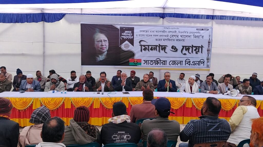 মোঃ হাফিজুল ইসলাম, সাতক্ষীরা : বিএনপির চেয়ারপারসন বেগম খালেদা জিয়ার রুহের মাগফেরাত কামনায় সাতক্ষীরায় মিলাদ এবং দোয়া মাহফিল অনুষ্ঠিত হয়েছে।
