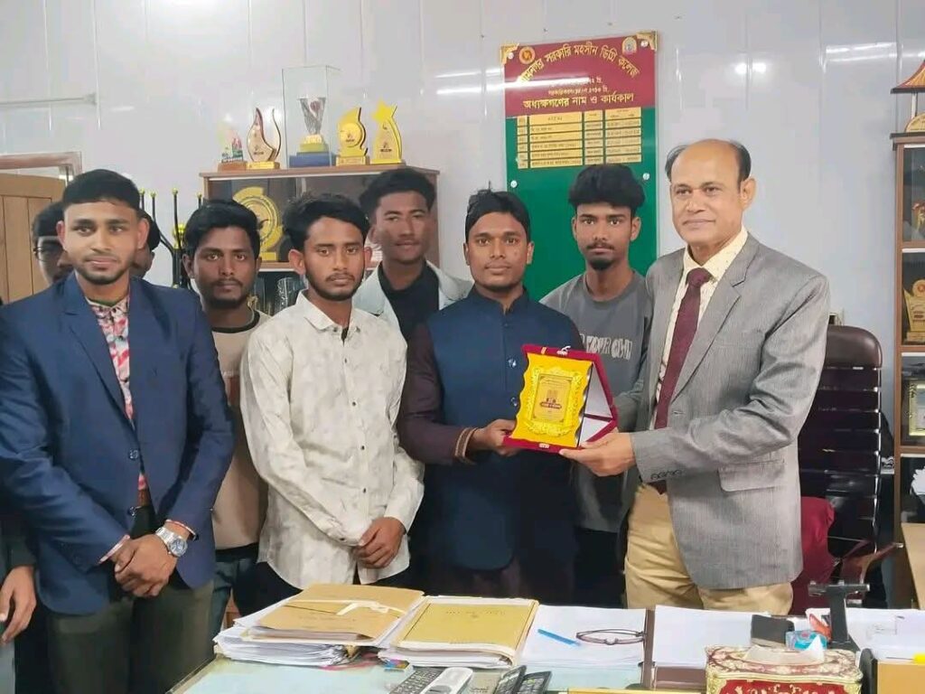 এ উপলক্ষে বুধবার (১৪ জানুয়ারি) দুপুর ১২টা ৪০ মিনিটে কলেজের অধ্যক্ষের কার্যালয়ে বাংলাদেশ ইসলামি ছাত্রশিবির, শ্যামনগর সরকারি মহসিন কলেজ শাখার পক্ষ থেকে তাকে ক্রেস্ট প্রদান করে শুভেচ্ছা ও অভিনন্দন জানানো হয়।