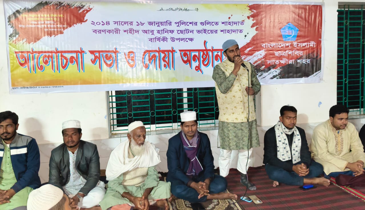 বাংলাদেশ ইসলামী ছাত্রশিবিরের কর্মী ও ২০৫তম শহীদ আবু হানিফ ছোটনের শাহাদাত বার্ষিকীতে তাঁর পরিবারের সঙ্গে সাক্ষাৎ করেছেন বাংলাদেশ ইসলামী ছাত্রশিবির সাতক্ষীরা শহর শাখার নেতৃবৃন্দ।