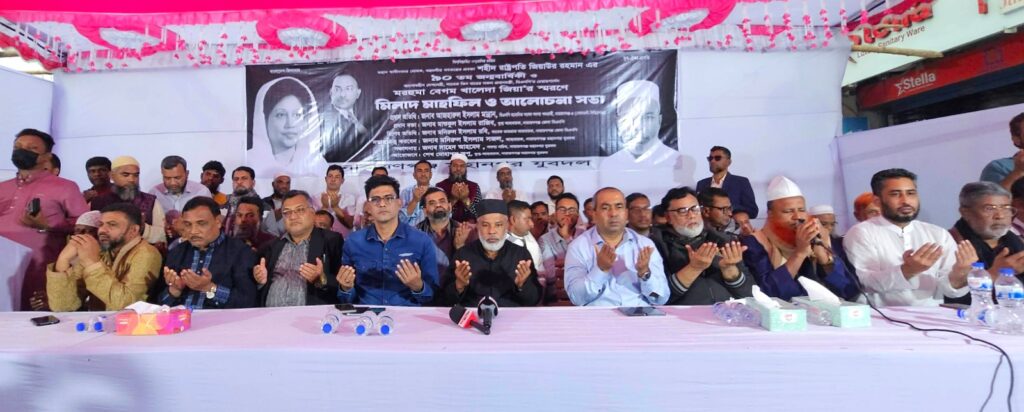 নারায়ণগঞ্জ মহানগর যুবদলের যুগ্ম-আহ্বায়ক শেখ মোহাম্মদ অপুর আয়োজনে শহীদ রাষ্ট্রপতি জিয়াউর রহমানের ৯০তম জন্মবার্ষিকী এবং বিএনপির সাবেক চেয়ারপারসন বেগম খালেদা জিয়ার স্মরণে দোয়া, মিলাদ মাহফিল ও আলোচনা সভা অনুষ্ঠিত হয়েছে।