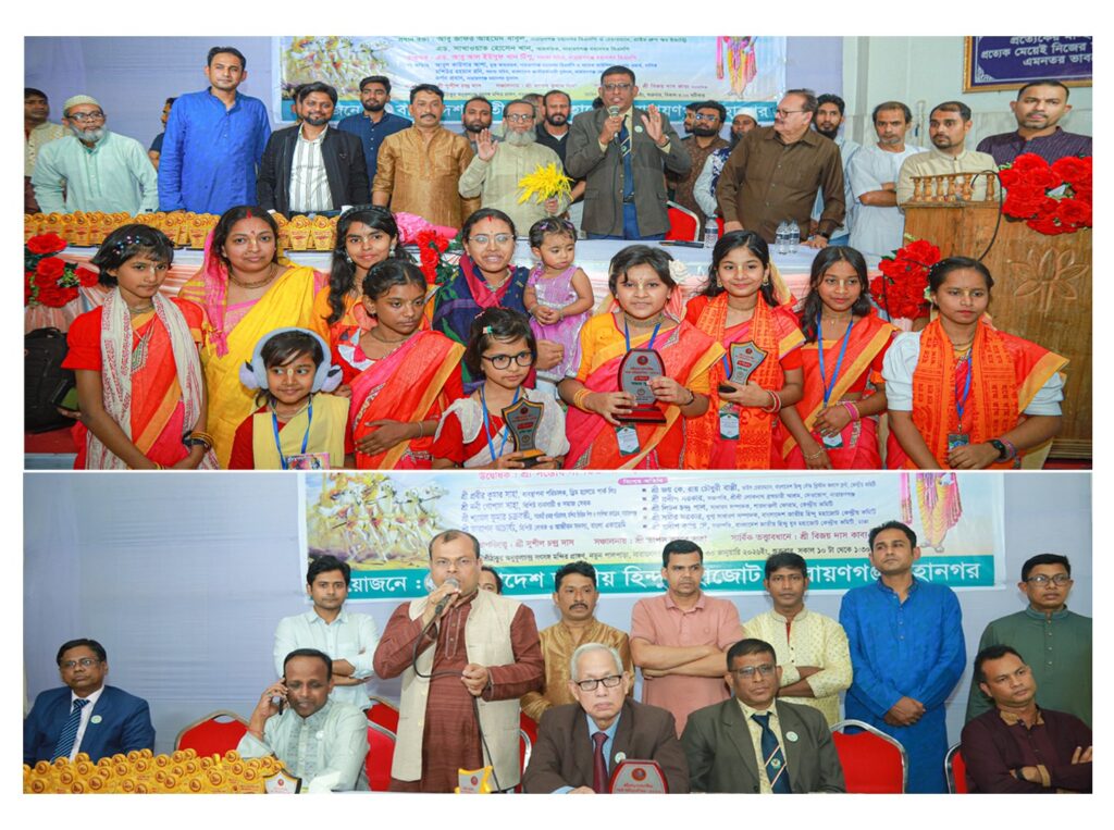নারায়ণগঞ্জ শহরের নতুন পালপাড়া সৎসঙ্গ মন্দিরে বাংলাদেশ জাতীয় হিন্দু মহাজোট নারায়ণগঞ্জ মহানগর কমিটির সভাপতি সুশীল চন্দ্র দাসের সভাপতিত্বে তাপস কুমার সাহার সঞ্চালনায় নির্বাহী সভাপতি ও মুখপাত্র বিজয় দাস কাব্য সাংবাদিক এর সার্বিক তত্ত্বাবধানে গীতা পাঠ প্রতিযোগিতায় প্রথমার্ধের অনুষ্ঠানে প্রধান অতিথি হিসেবে উপস্থিত ছিলেন, বাংলাদেশ জাতীয় হিন্দু মহাজোট কেন্দ্রীয় কমিটির সভাপতি ড. প্রভাস চন্দ্র রায়। প্রধান আলোচক নির্বাহী মহাসচিব পলাশ কান্তি দে। উদ্বোধক হিসেবে উপস্থিত ছিলেন, হিন্দু ধর্মীয় কল্যাণ ট্রাস্টের ট্রাস্টি সন্তোষ দাশগুপ্ত অমিত।