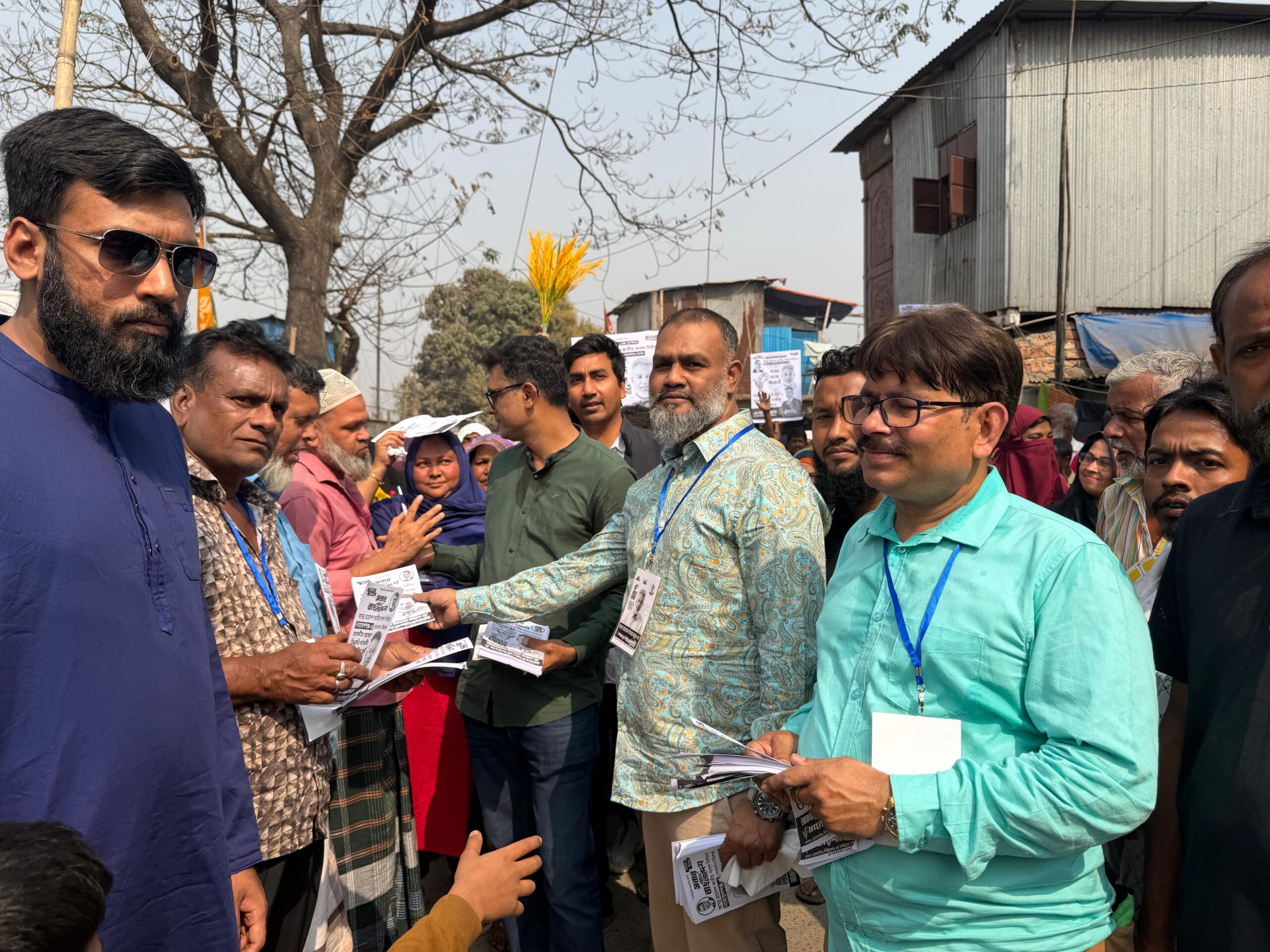 সিদ্ধিরগঞ্জ প্রতিনিধি : আসন্ন ত্রয়োদশ জাতীয় সংসদ নির্বাচনে নারায়ণগঞ্জ-৩ (সোনারগাঁ-সিদ্ধিরগঞ্জ) আসনে বিএনপি মনোনীত প্রার্থী আজহারুল ইসলাম মান্নানের পক্ষে প্রায় সাড়ে ৫ হাজার নেতাকর্মী নিয়ে নারায়ণগঞ্জ জেলা বিএনপির সাবেক আইন বিষয়ক সম্পাদক ও নাসিক ৬নং ওয়ার্ড বিএনপি নেতা হাজী সেলিমের উদ্যোগে ব্যাপক নির্বাচনী গণসংযোগ ও লিফলেট বিতরণ করা হয়েছে। সোমবার (০৯ ফেব্রুয়ারী) দুপুরে নাসিক ৬ নং ওয়ার্ডে এ গণসংযোগ লিফলেট বিতরণ ও পরে উঠান বৈঠক অনুষ্ঠিত হয়ে। গণসংযোগ ও উঠান বৈঠকে প্রধান অতিথি হিসেবে উপস্থিত থেকে বক্তব্য রাখেন নারায়ণগঞ্জ জেলা বিএনপির যুগ্ম আহবায়ক মাশুকুল ইসলাম রাজীব। এছাড়া বিশেষ অতিথি হিসেবে উপস্থিত ছিলেন নারায়ণগঞ্জ মহানগর যুবদলের আহ্বায়ক মনিরুল ইসলাম সজল। এসময় হাজার হাজার নেতাকর্মী ও সমর্থকরা মিছিল, গণসংযোগ ও উঠান বৈঠকে অংশ নেন। পুরো এলাকায় ধানের শীষের পক্ষে উৎসবমুখর পরিবেশের সৃষ্টি হয়। উঠান বৈঠকে প্রধান অতিথি মাশুকুল ইসলাম রাজীব বলেন, আগামী ১২ ফেব্রুয়ারি নির্বাচনে আজহারুল ইসলাম মান্নান ভাইকে বিপুল ভোটে বিজয়ী করতে আমরা মাঠ পর্যায়ে কাজ করছি। সাধারণ মানুষের স্বতঃস্ফূর্ত সাড়া দেখে আমরা নিশ্চিত যে, সিদ্ধিরগঞ্জ থেকে ধানের শীষের বিজয় সুনিশ্চিত হবে। এসময় গণসংযোগে আরও উপস্থিত ছিলেন বিএনপি নেতা মো: হানিফ, ঝন্টু, জামান, শাহ আলম, আবু সালাম প্রমুখ।