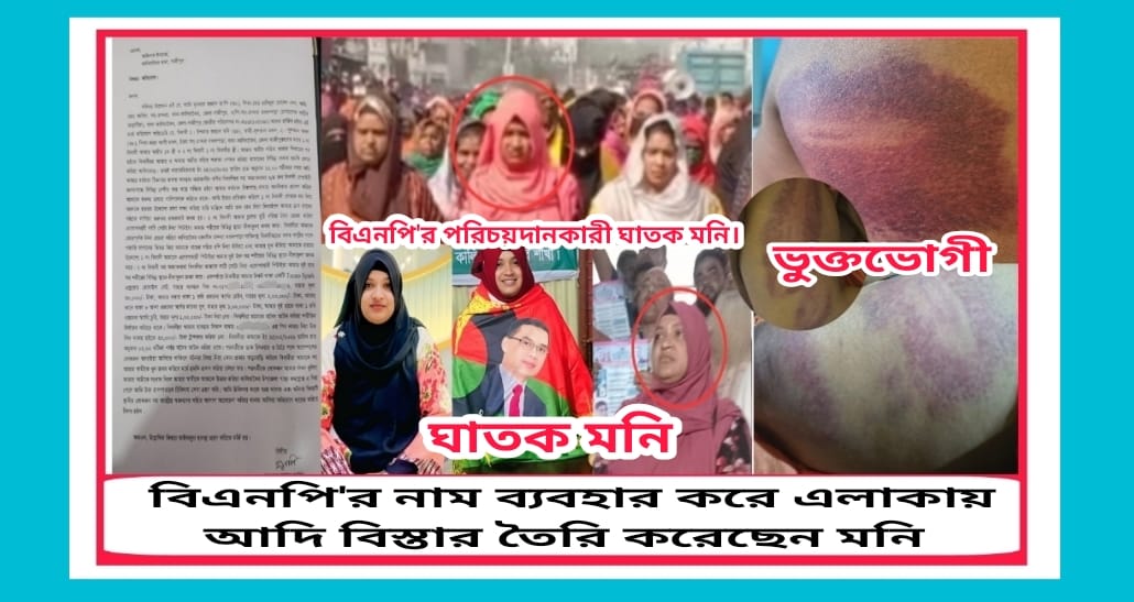 এই বিয়ের খবর জানতে পারেন বিএনপি’নেত্রী পরিচয়দানকারী মনি সেই সুবাদে কথিত মহিলা দলের নেত্রী পরিচয় দানকারী মনি কয়েকজন লোক সাথে করে নিয়ে একুশে ফেব্রুয়ারি রাতে ভূক্তভোগীর বাড়িতে আসে। এ সময় তারা অশ্লীল ভাষায় গালিগালাজ করতে থাকেন এবং বলেন তুই জাহিদ কে কেন বিয়ে করছিস এক পর্যায়ে ভুক্তভোগী নারী ন্যায় সঙ্গত প্রতিবাদ করলে,চুলের মুঠি ধরে বাড়ির পাশে থাকা গজারি গাছের সাথে বেঁধে লাঠি দিয়ে মারধর করে শরিলের বিভিন্ন স্থানে রক্তাক্ত জখম করেন।
