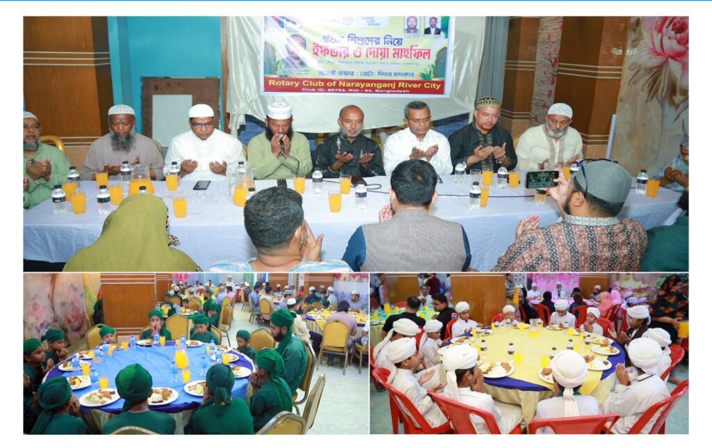 পবিত্র মাহে রমজান উপলক্ষে এতিম শিশুদের নিয়ে রোটারি ক্লাব অফ নারায়ণগঞ্জ রিভার সিটির ইফতার ও দোয়া মাহফিল অনুষ্ঠিত হয়েছে।