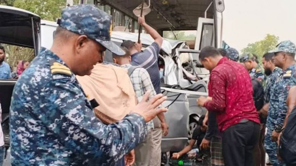 বাগেরহাটের রামপালে নৌবাহিনীর বাসের সঙ্গে মাইক্রোবাসের মুখোমুখি সংঘর্ষে বর-কনেসহ ১৩ জন নিহত হয়েছেন। এ ঘটনায় আরও কয়েকজন আহত হয়েছেন। বৃহস্পতিবার (১২ মার্চ) বিকেলে উপজেলার বেলাই ব্রিজ সংলগ্ন এলাকায় এ দুর্ঘটনা ঘটে।