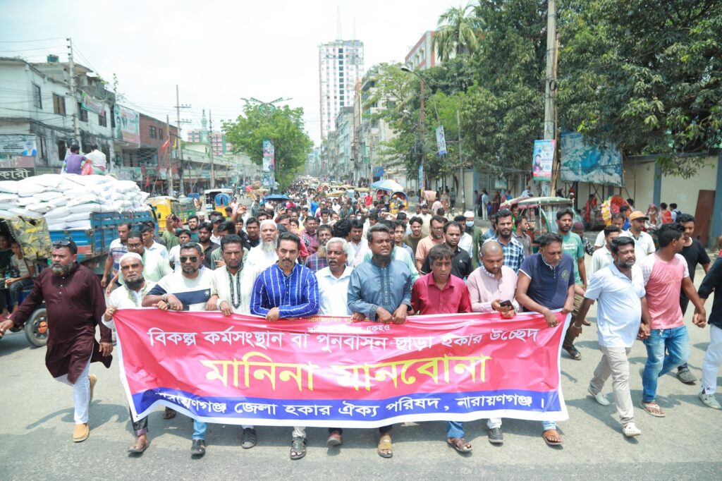 নারায়ণগঞ্জে হকার পুনর্বাসনের দাবিতে বিক্ষোভ সমাবেশ ও মিছিলকে করেছে হকাররা। চাষাড়া শহীদ মিনার থেকে সিটি কর্পোরেশনের নগর ভবন পর্যন্ত এ বিক্ষোভ-মিছিল করেন তারা।