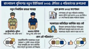 চিঠির সঙ্গে পুলিশ ড্রেস রুলস-২০২৫ এ প্রয়োজনীয় সংশোধন অথবা সংযোজনপূর্বক প্রজ্ঞাপন জারি সংক্রান্ত একটি খসড়া প্রজ্ঞাপন সংযুক্ত করা হয়।